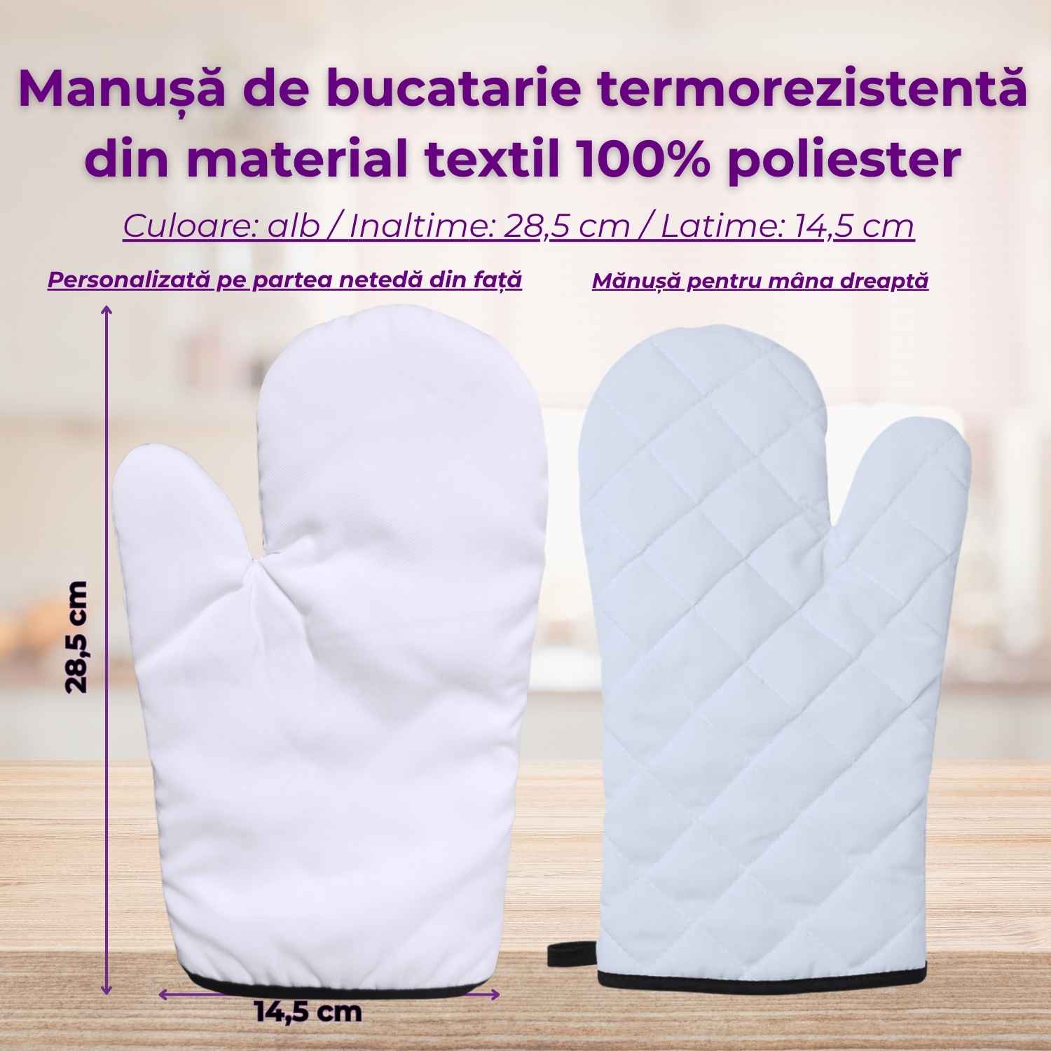 - Tip produs: mănușă de bucătărie termorezistentă / mănușă cuptor personalizată
