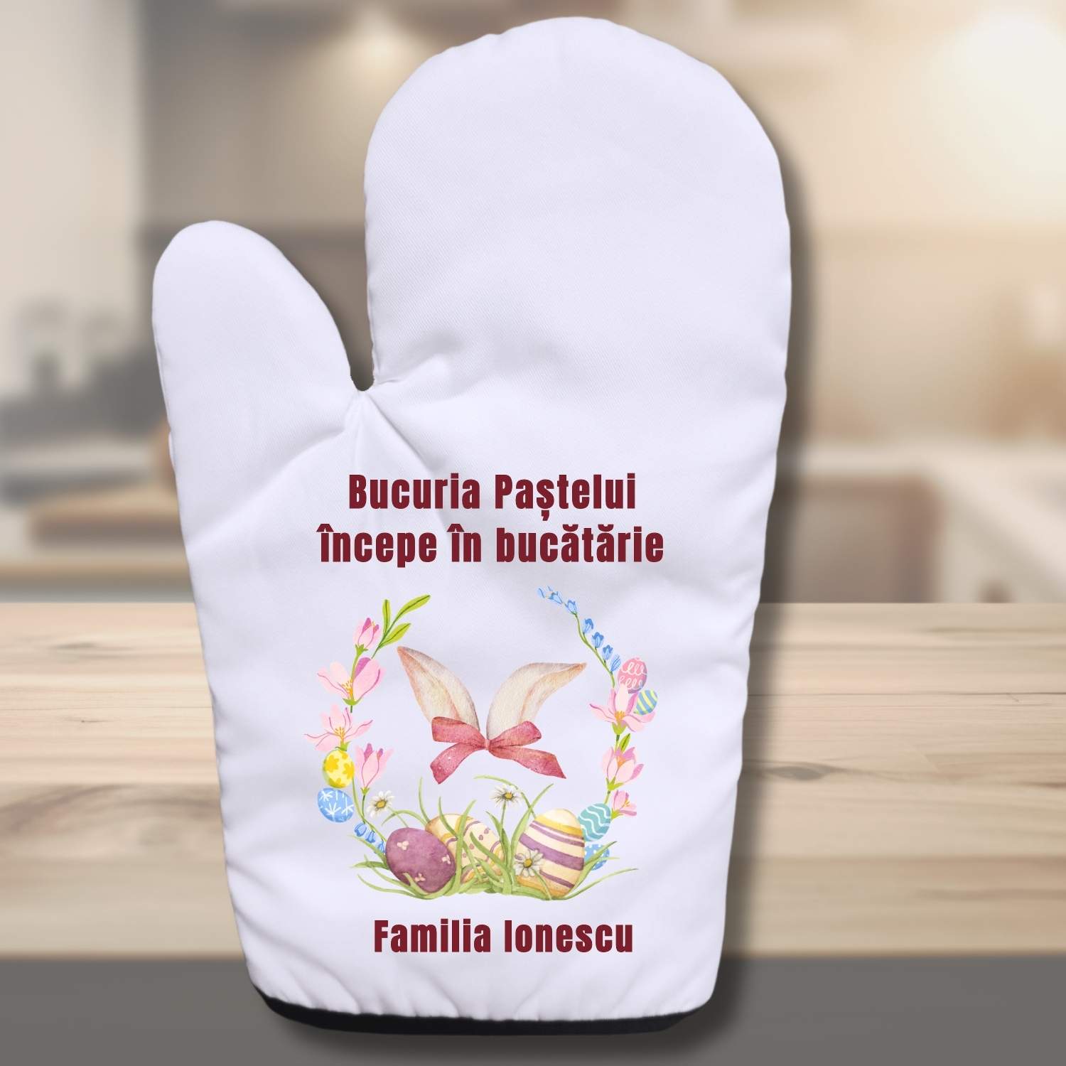 Mănușă de bucătărie personalizată de Paște – cadou util și festiv pentru familie