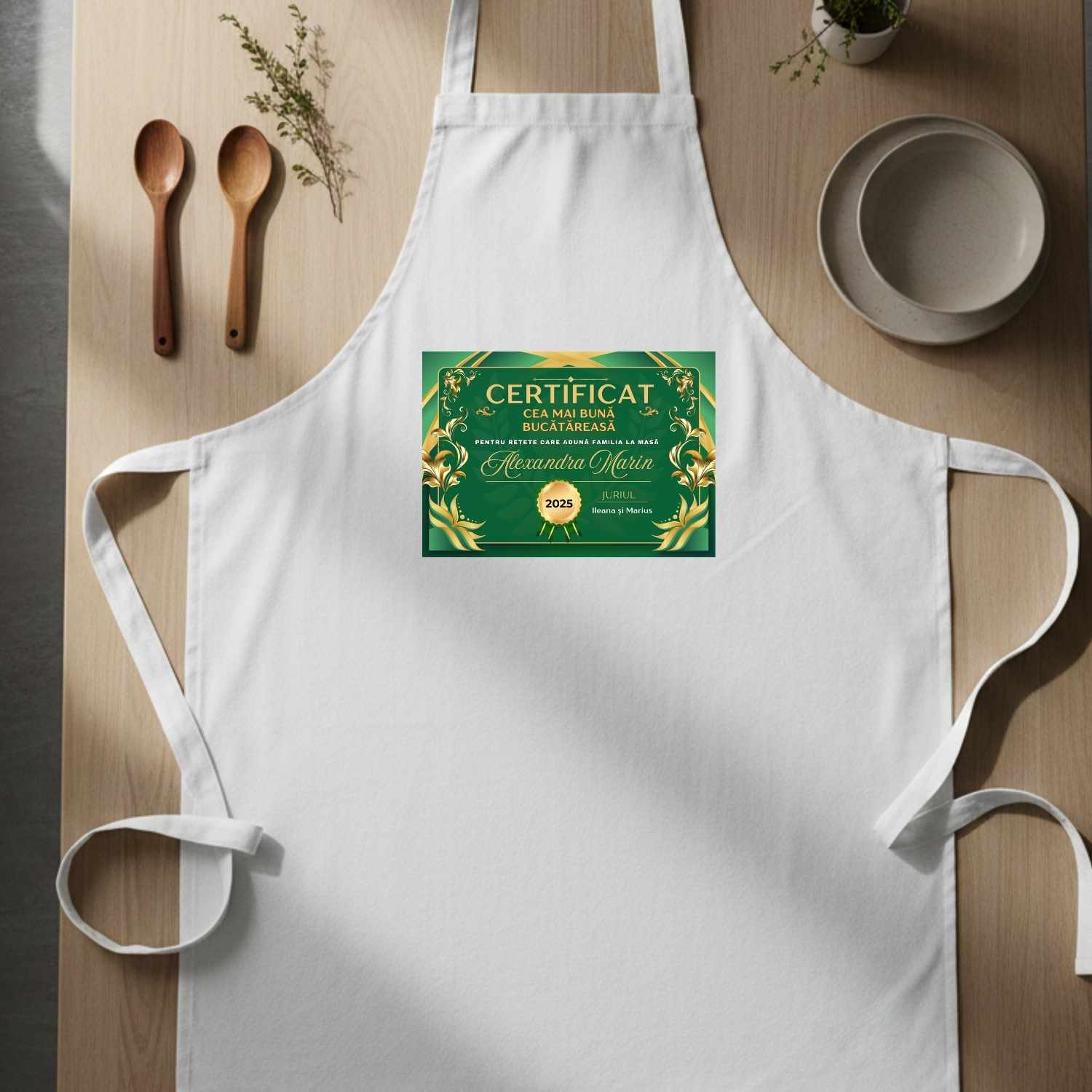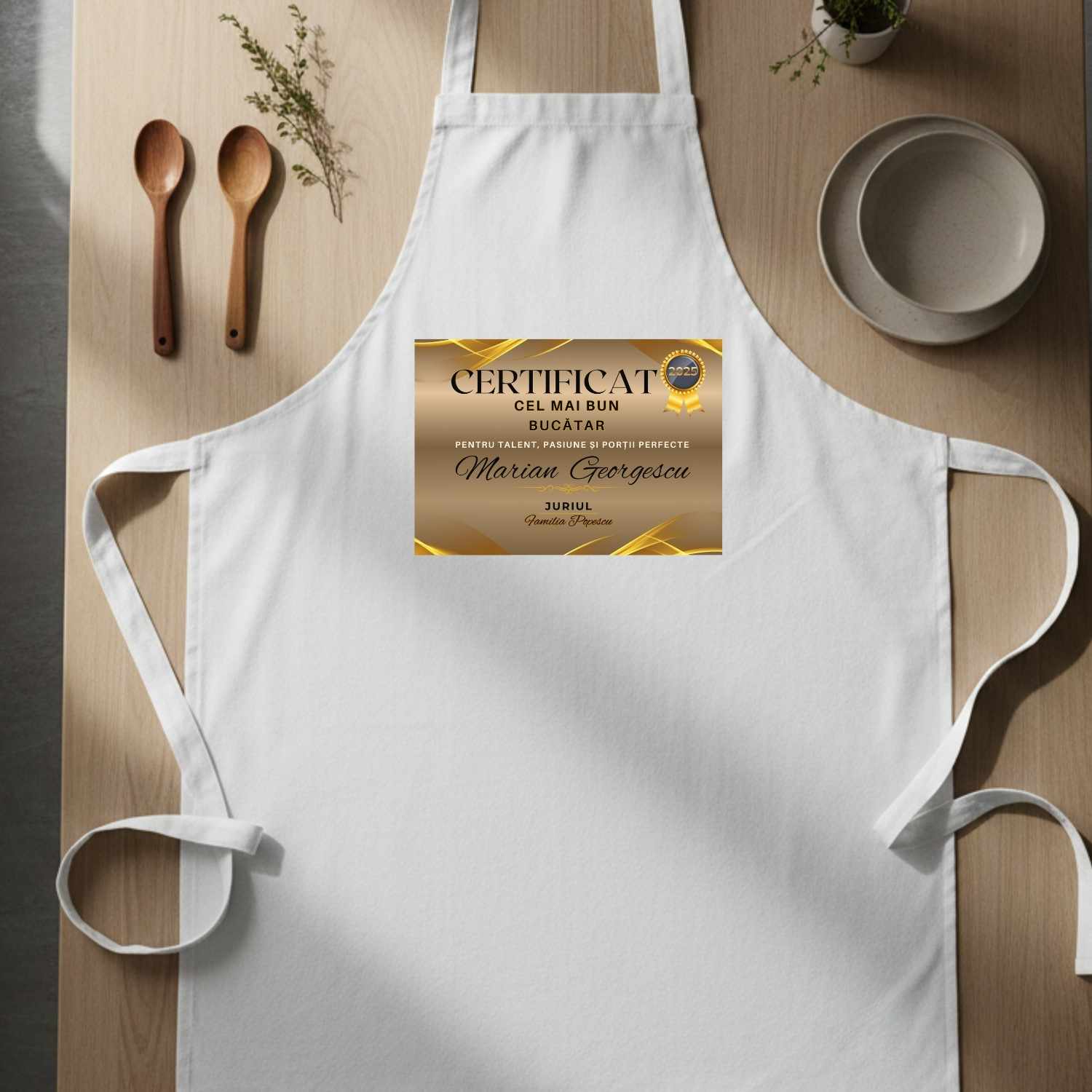 - Model 6 – Cel mai bun bucătar (Auriu Premium): „diplomă” de campion, unisex, foarte potrivit pentru aniversări.