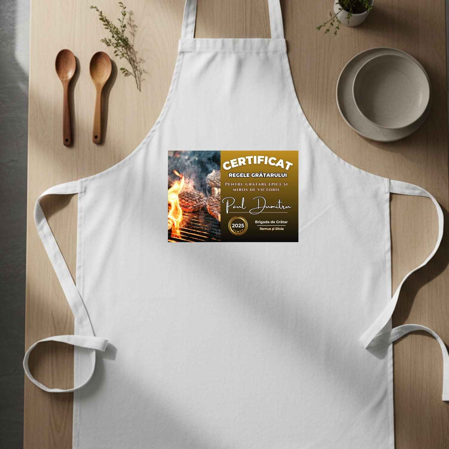 Transformă gătitul într-un moment memorabil! Acest șorț personalizat Diplomă / Certificat poate fi personalizat cu nume, mesaj, an sau dată. Este alegerea perfectă când vrei un cadou util, amuzant sau elegant – pentru bucătari de ocazie, familie, prieteni, pasionați de grătar sau „chef-ul” familiei.