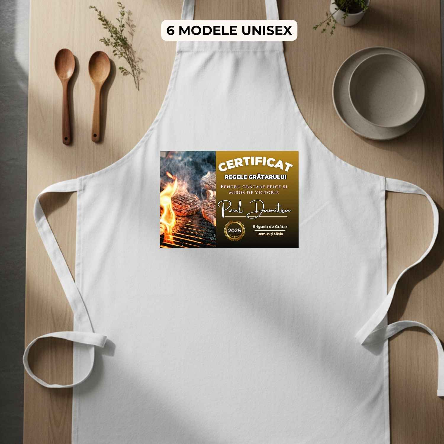 Șorț personalizat Diplomă / Certificat cu nume și mesaj (Unisex) – cadou cu impact instant 6 modele unice