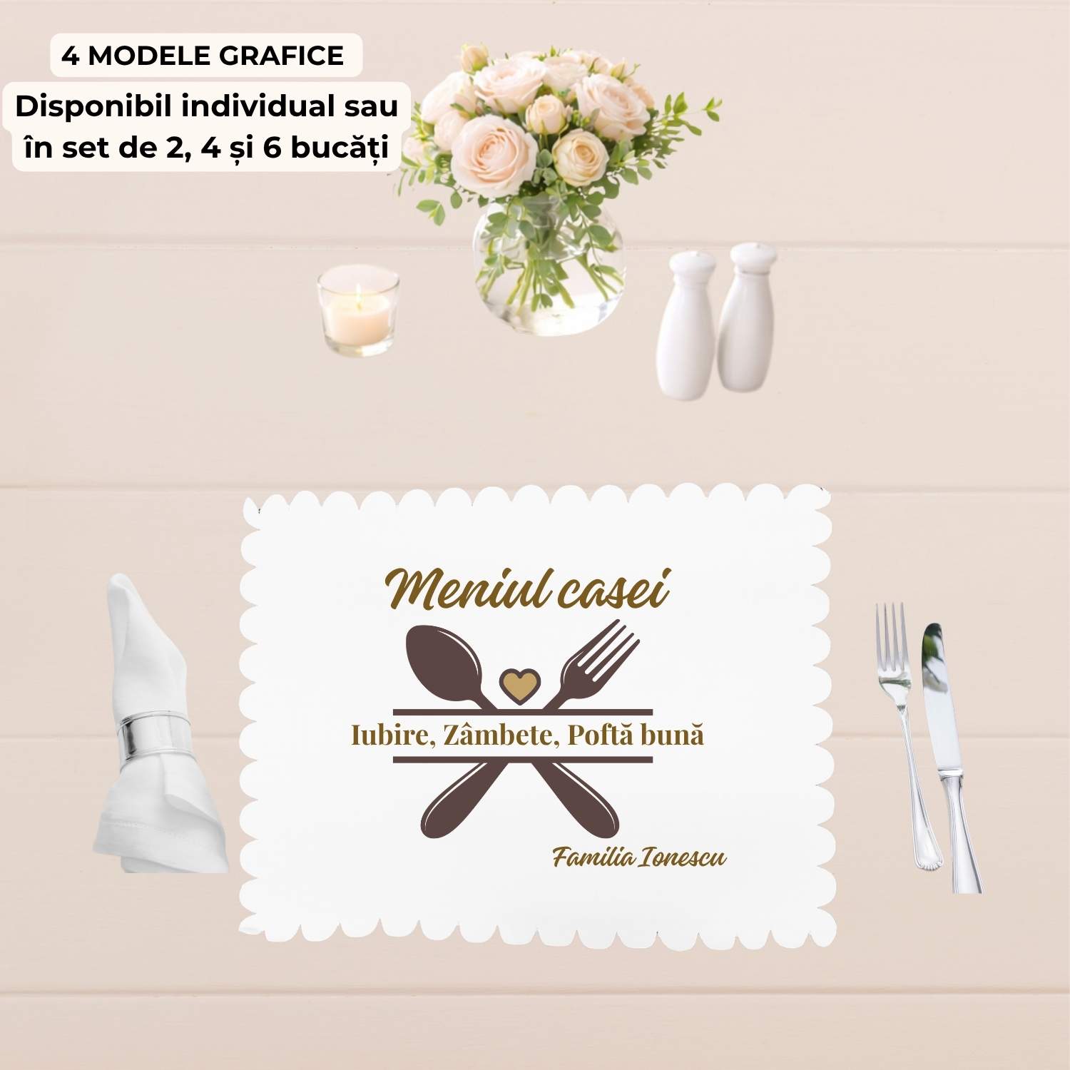 Un model elegant și creativ. Combină ideea de masă de familie cu un mesaj cald și ușor de folosit zilnic.