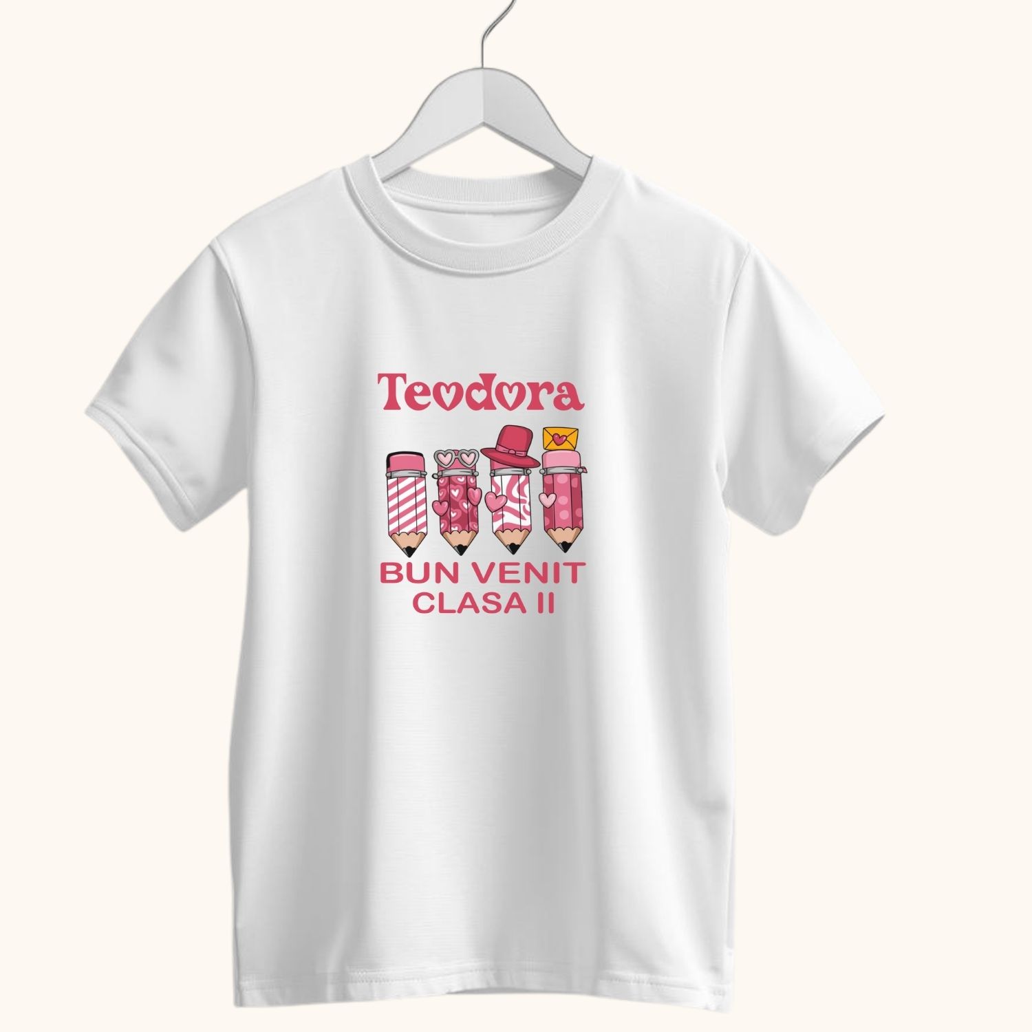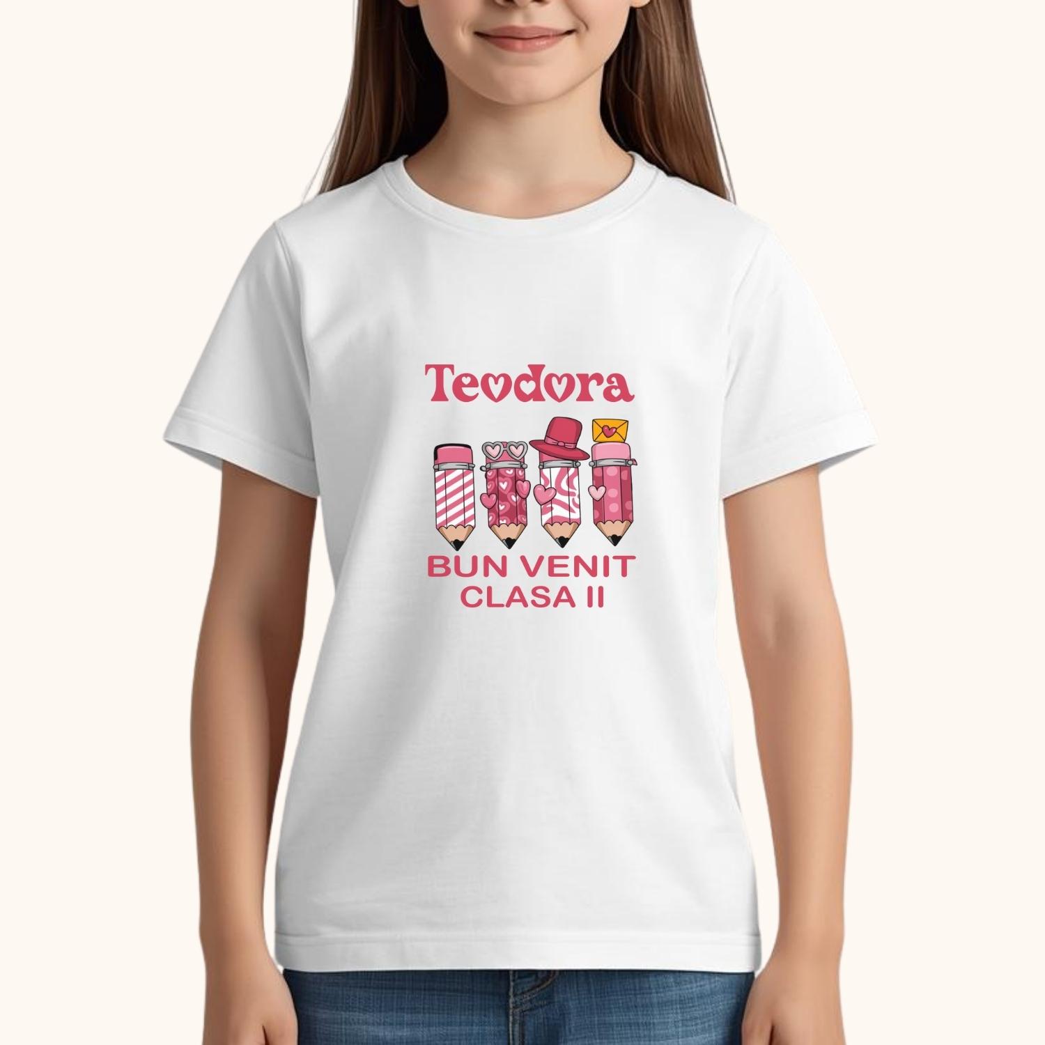 Tricou Back to School personalizat pentru copii (fete și băieți) – „Bun venit la școală” cu nume
