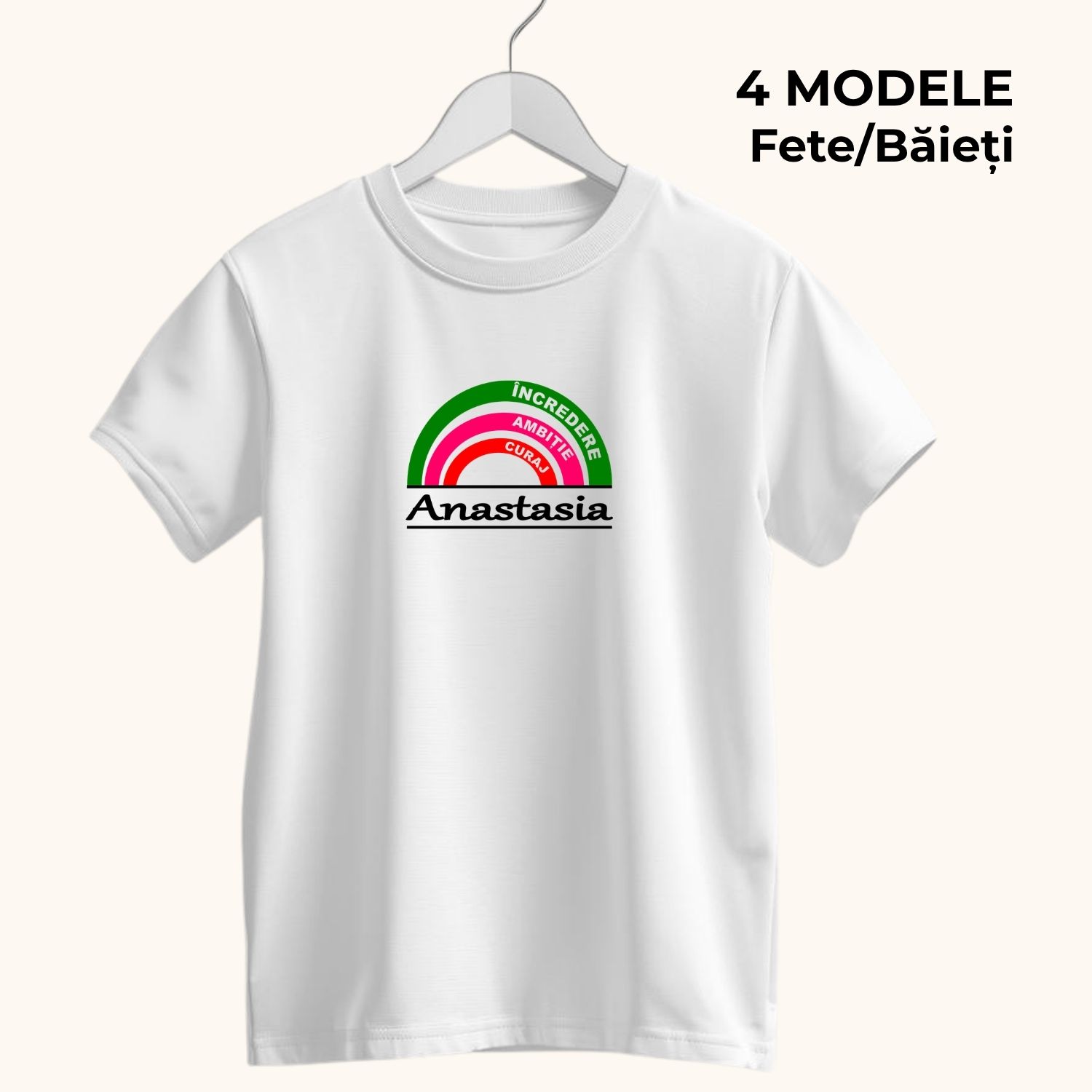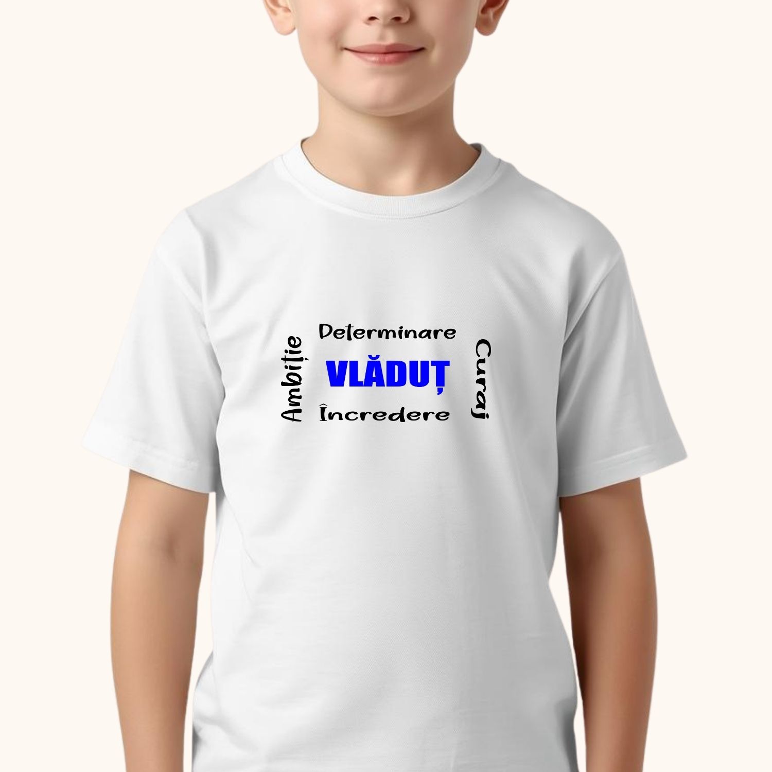 Tricou Motivațional Copii cu Nume personalizat cu mesaje pozitive pentru încredere, curaj și autenticitate