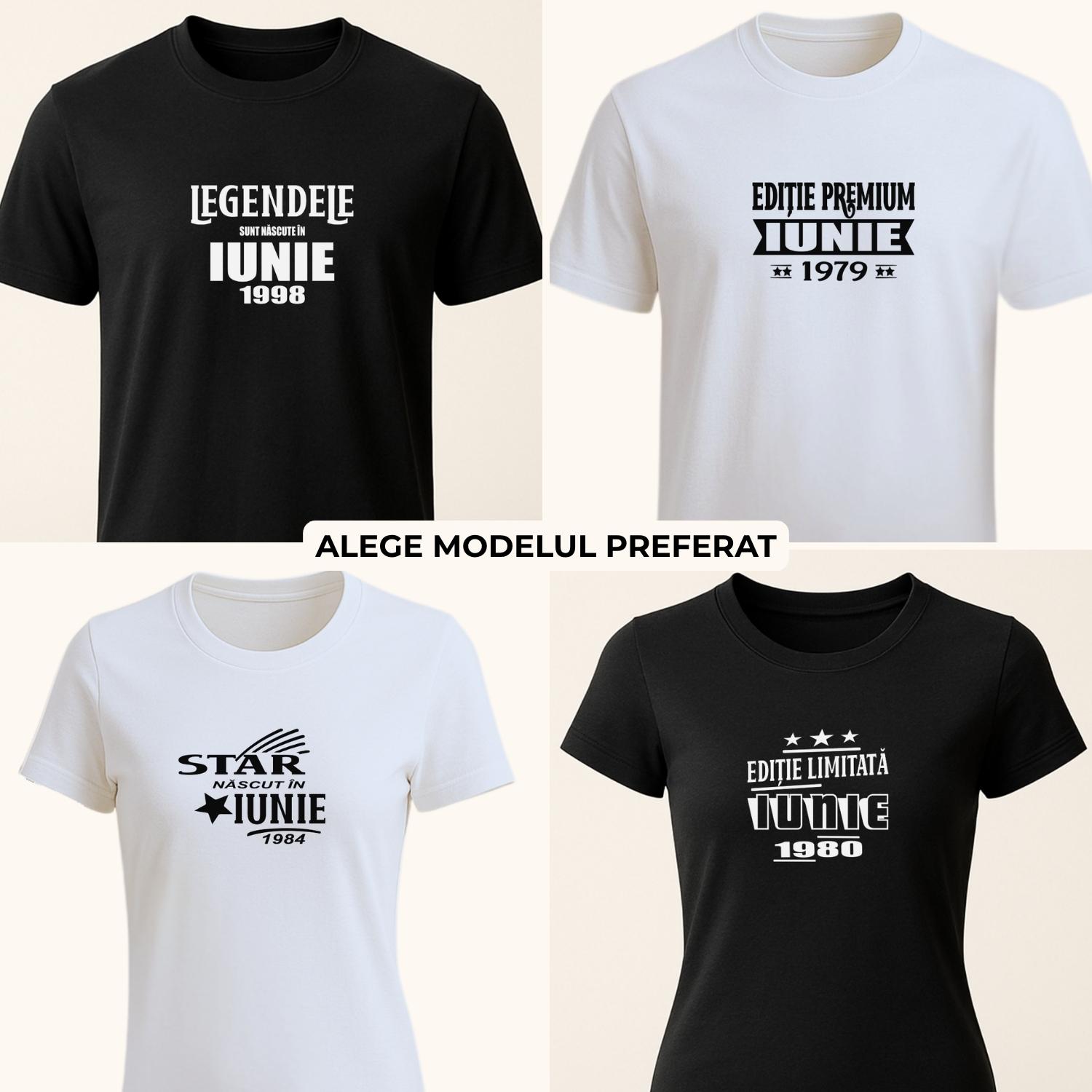 - Model 2 – Ediție Premium Iunie – o variantă mai matură și mai elegantă, foarte bună pentru cei care vor un tricou aniversar cu aer premium.