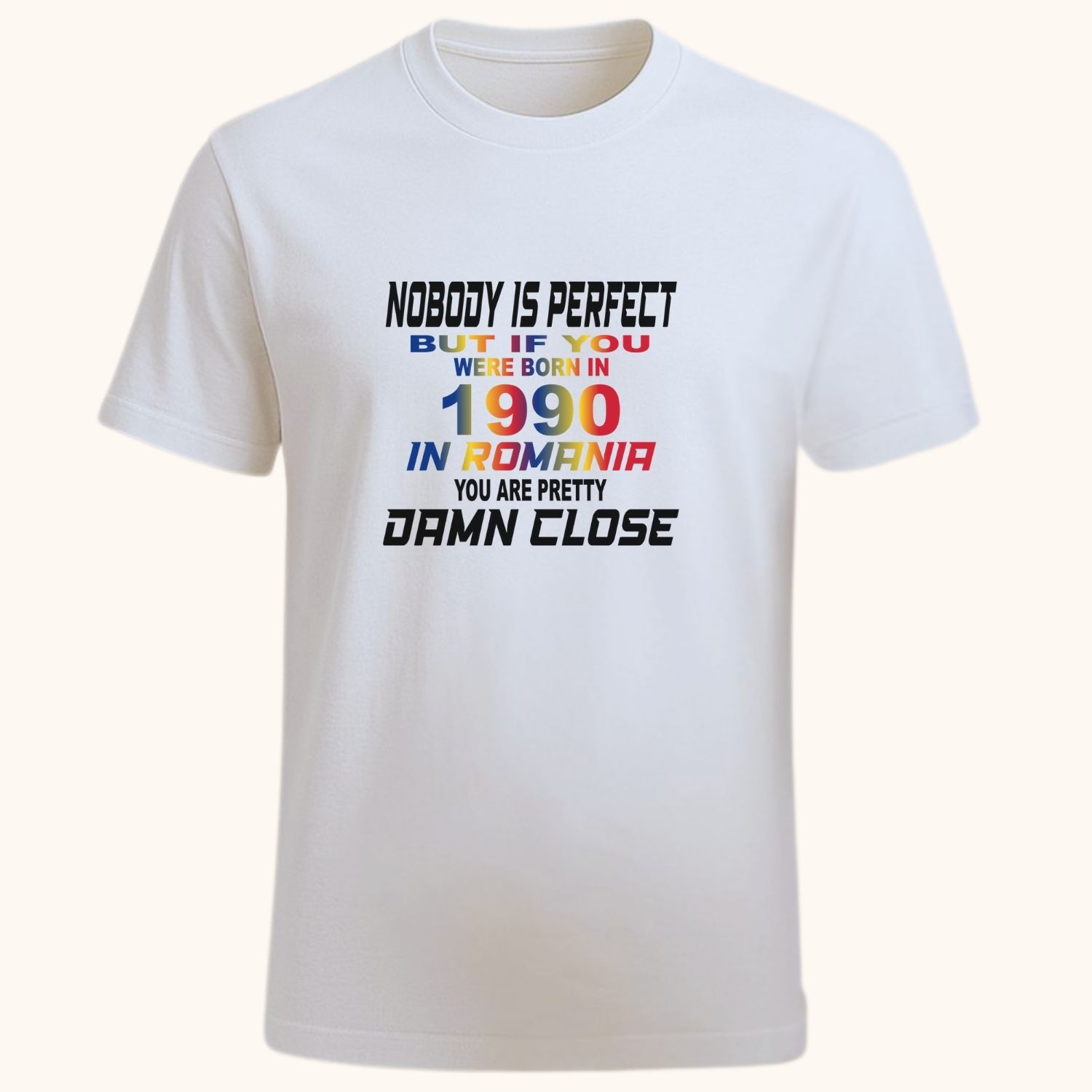 Tricou personalizat unisex Born in Romania cu an la alegere alb