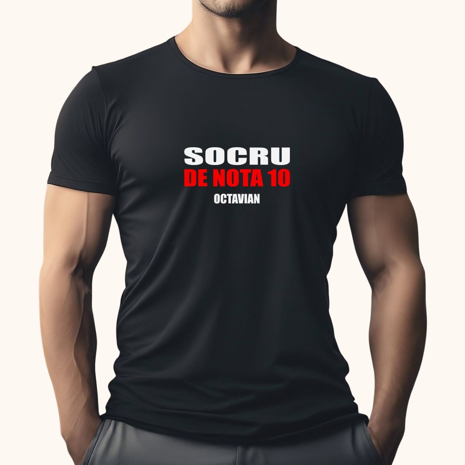 Tricou pentru socru, model Socru de nota 10, negru, cu nume personalizat, cadou amuzant cu respect