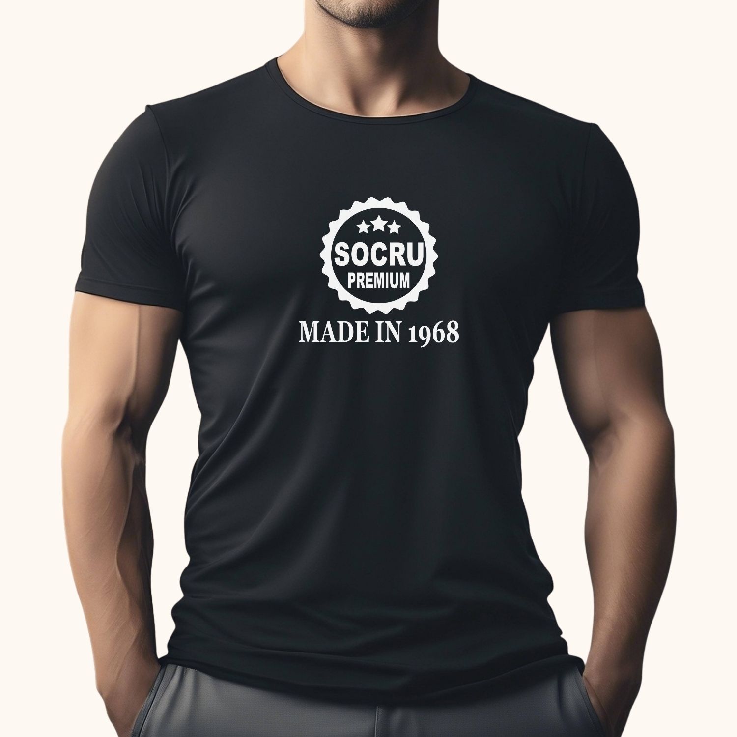 Tricou aniversar pentru socru, model Socru Premium Made in an, negru, cadou personalizat pentru bărbați