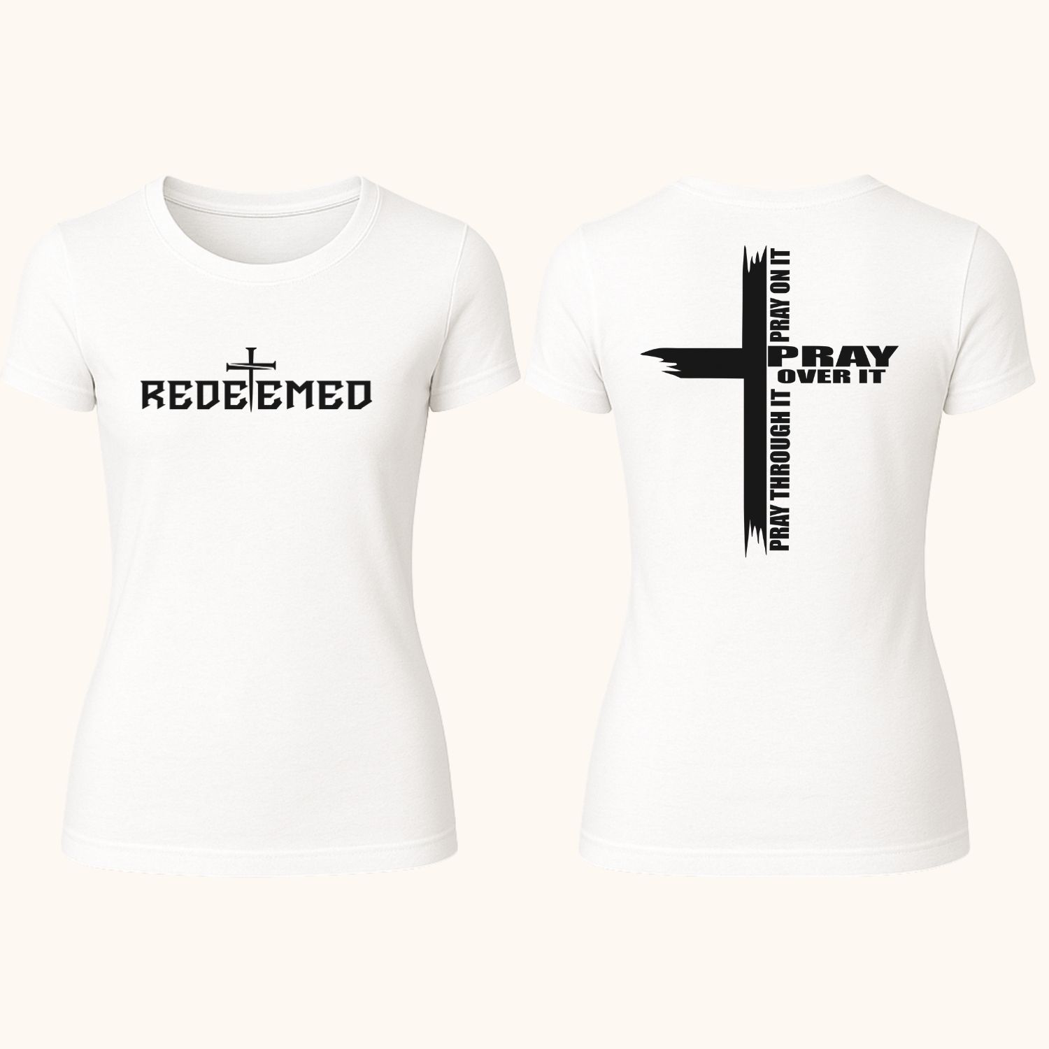 Tricou cu mesaj inspirational „Redeemed” – personalizat față și spate – UNISEX – Cadou unic