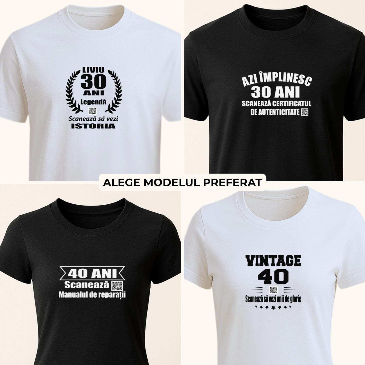 Comandă acum! Alege modelul preferat, selectează croiala, completează personalizarea, trimite-ne conținutul pentru QR și lasă-ne să transformăm ideea ta într-un cadou aniversar original.