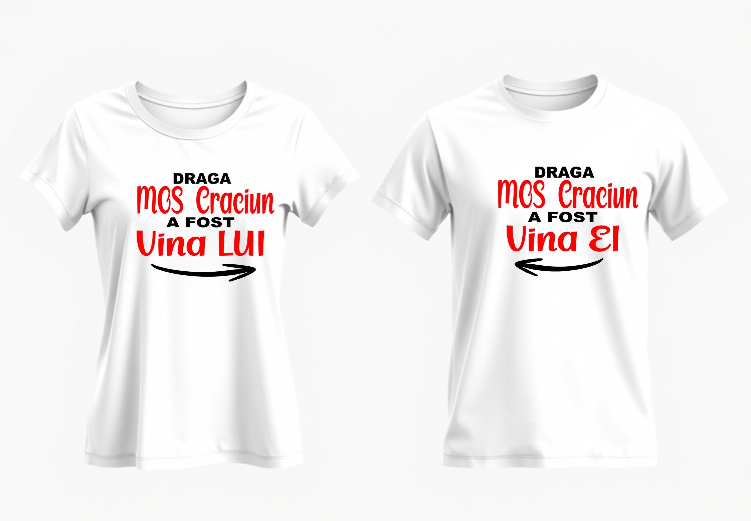 COMANDĂ ACUM noile tricouri Crăciun cuplu, perfect pentru cei care iubesc umorul și magia Crăciunului!